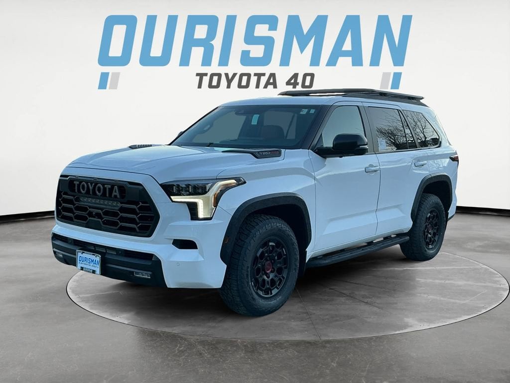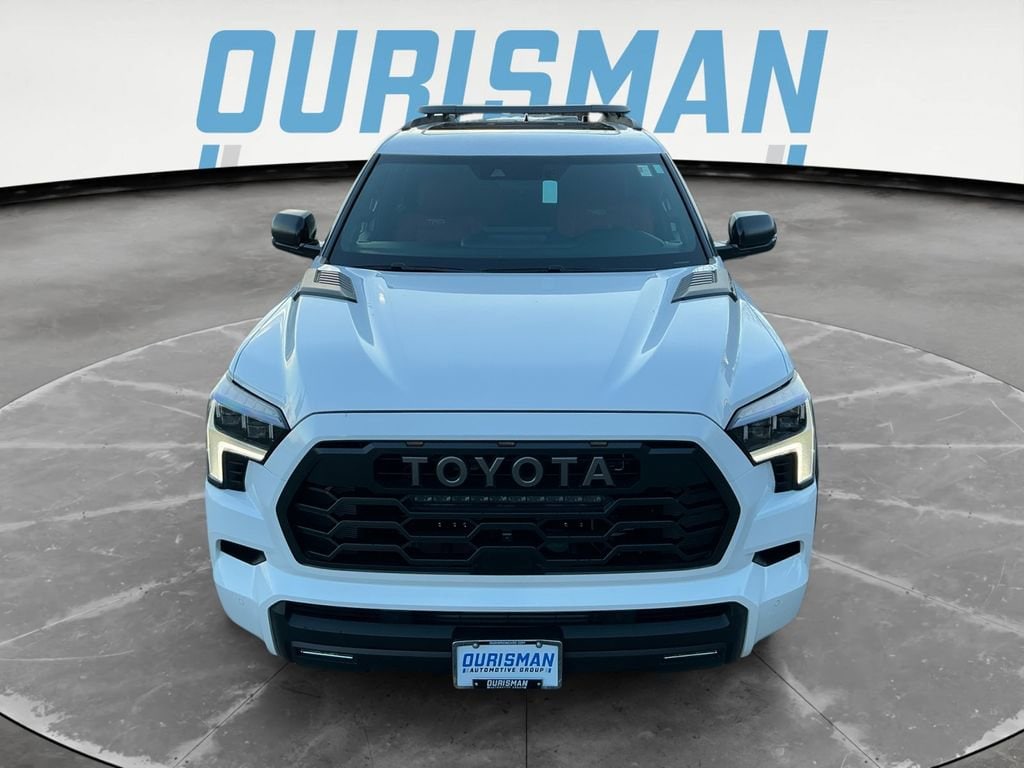 Tow Technology Package (Wireless Trailer Camera System), TRD Pro Package, V6 Hybrid, 10-Speed Automatic, 4WD, 14 Speakers, 3rd row seats: split-bench, 4-Wheel Disc Brakes, ABS brakes, Air Conditioning, Alloy wheels, AM/FM radio: SiriusXM, Anti-whiplash front head restraints, Apple CarPlay/Android Auto, Auto High-beam Headlights, Auto-dimming door mirrors, Auto-dimming Rear-View mirror, Automatic temperature control, Brake assist, Bumpers: body-color, Compass, Dash Cam, Delay-off headlights, Driver door bin, Driver vanity mirror, Dual front impact airbags, Dual front side impact airbags, Electronic Stability Control, Emergency communication system: Safety Connect (10-year trial), Exterior Parking Camera Rear, Front anti-roll bar, Front Bucket Seats, Front Center Armrest w/Storage, Front dual zone A/C, Front fog lights, Front reading lights, Front wheel independent suspension, Fully automatic headlights, Garage door transmitter: HomeLink, Headlight cleaning, Heated and Ventilated Front Seats, Heated door mirrors, Heated front seats, Heated steering wheel, Illuminated entry, Knee airbag, Leather Shift Knob, Leather steering wheel, Low tire pressure warning, Memory seat, Navigation system: Drive Connect (1 year trial) includes Cloud Navigation with real time traffic and Google POI, Occupant sensing airbag, Outside temperature display, Overhead airbag, Overhead console, Panic alarm, Passenger door bin, Passenger vanity mirror, Power door mirrors, Power driver seat, Power Liftgate, Power moonroof, Power passenger seat, Power steering, Power Tilt/Slide Panoramic Rood with Power Sunshade, Power windows, Premium audio system: JBL, Radio: 14" Toyota Audio Multimedia with JBL Premium Audio, Rear air conditioning, Rear reading lights, Rear seat center armrest, Rear window defroster, Rear window wiper, Reclining 3rd row seat, Remote keyless entry, Security system, Speed control, Speed-sensing steering, Split folding rear seat, Spoiler, Sport steering wheel, Steering wheel mounted audio controls, Tachometer, Telescoping steering wheel, Tilt steering wheel, Traction control, TRD Pro SofTex Seat Trim, Trip computer, Turn signal indicator mirrors, Variably intermittent wipers, Ventilated front seats, Voltmeter, and Wheels: 18" Trd Pro Forged-Aluminum BBS. V6 Hybrid, 10-Speed Automatic, 4WD. 10-Speed Automatic V6 Hybrid